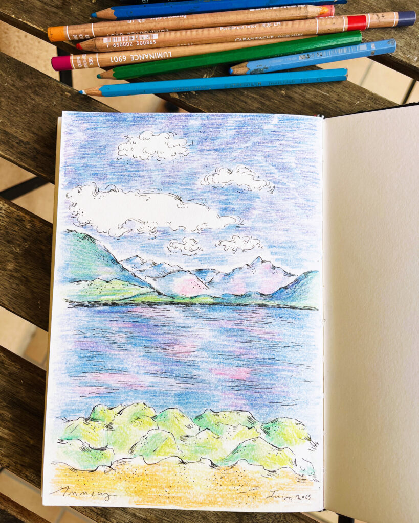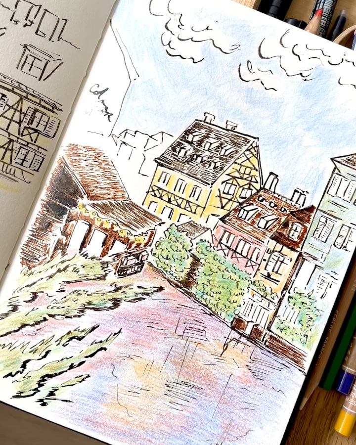 J’illustre les endroits que je visite, je fais des croquis des lieux, des ambiances, de la vie que je découvre autour de moi. J’expérimente de nouvelles techniques et je note des idées !