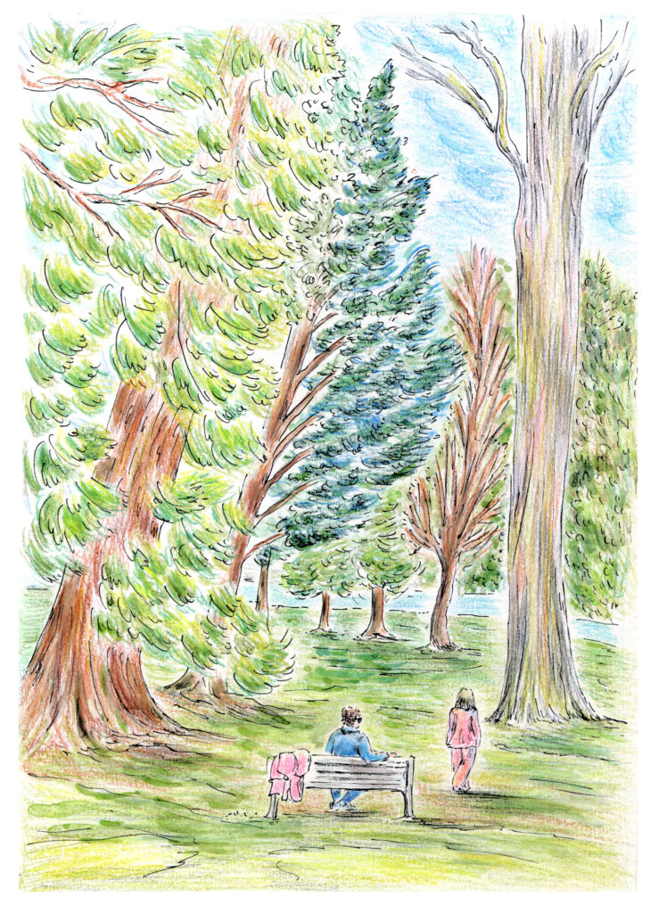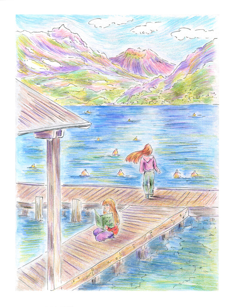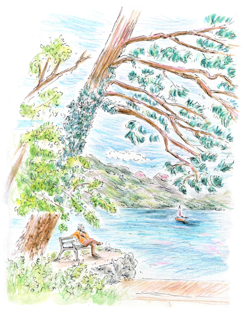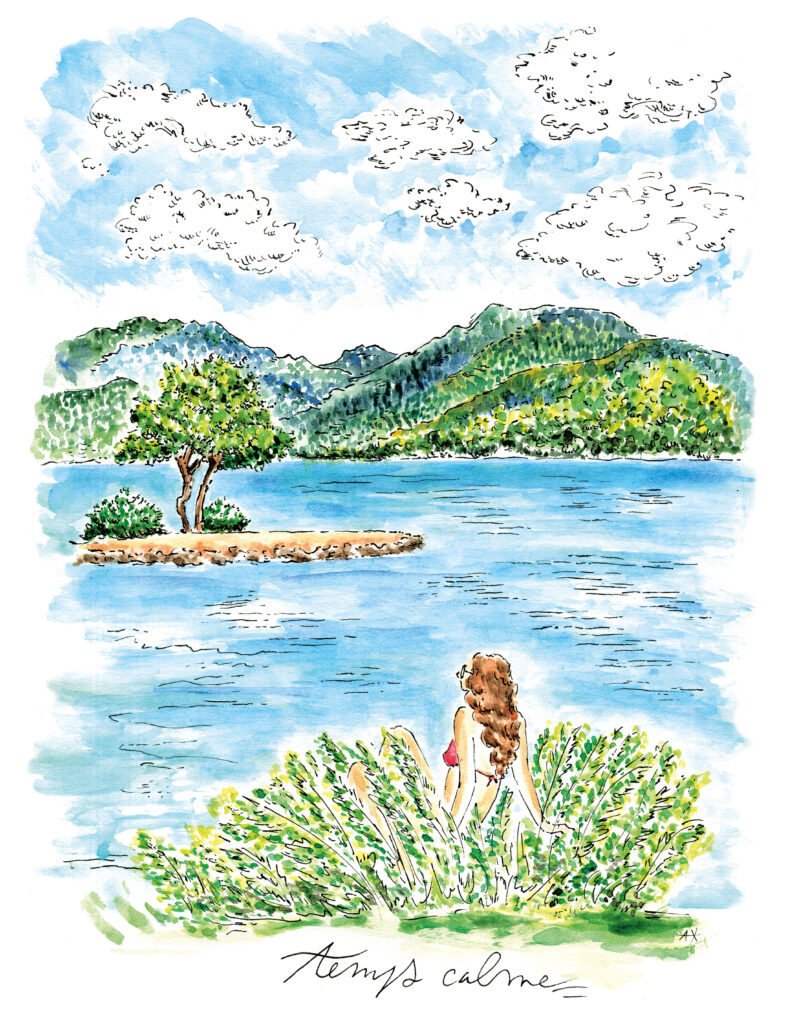 J’aime dessiner des personnes en contemplation, absorbées par le paysage, choisissant de ralentir pour simplement regarder.