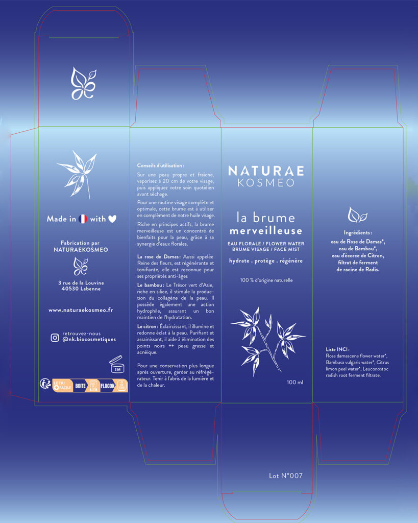 Création du logo, de la charte graphique et de l’identité visuelle. Création des etiquettes flacons, des packagings, et illustrations des produits: La brume merveilleuse et l’huile prècieuse.