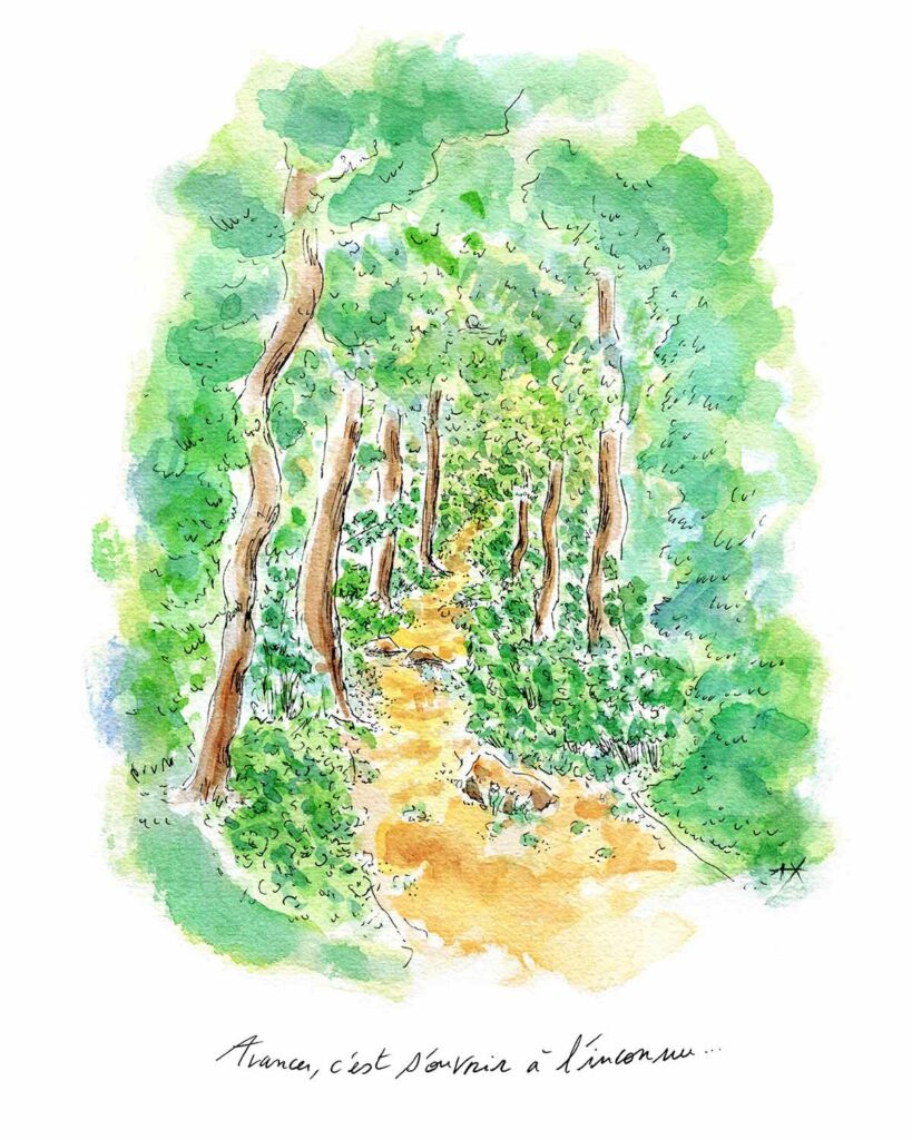 J’aime marcher dans la nature en quête de nouvelles inspirations.Prendre le temps d’observer les arbres, les plantes, les fleurs… ne faire qu’une avec le paysage qui m’entoure le temps d’un dessin.