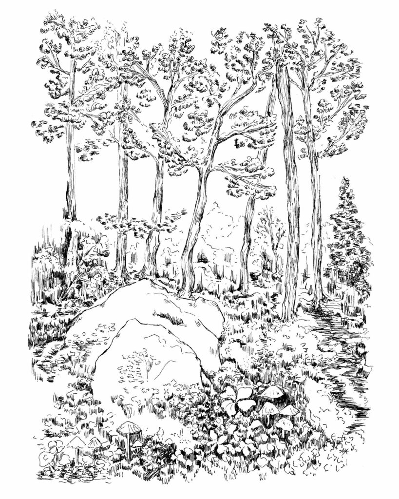 Des balades en nature, illustrée en noir et blanc et en couleurs.