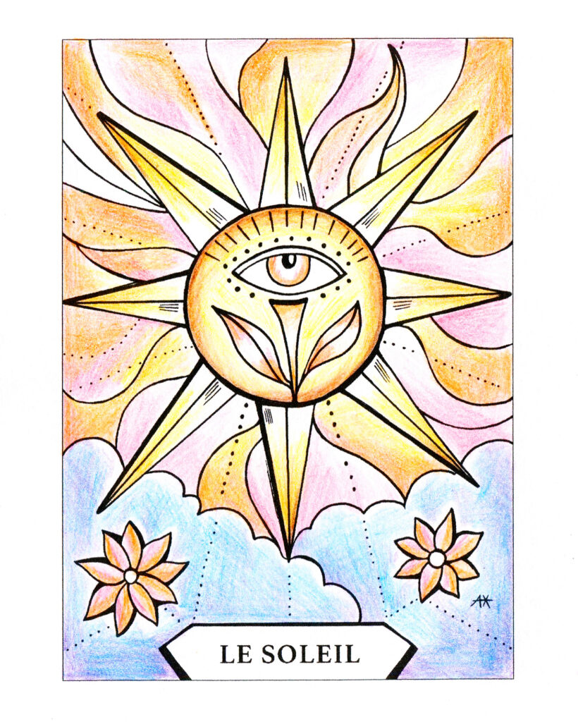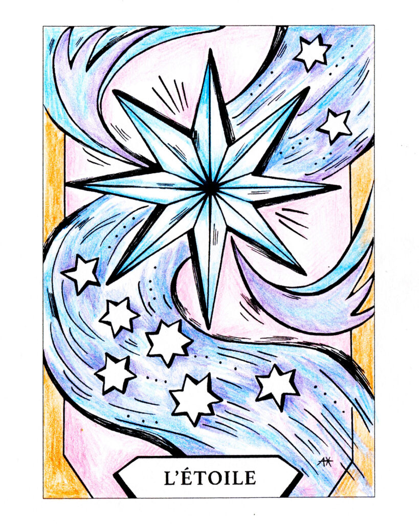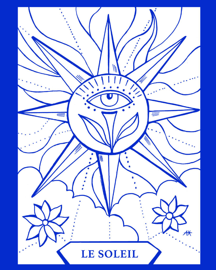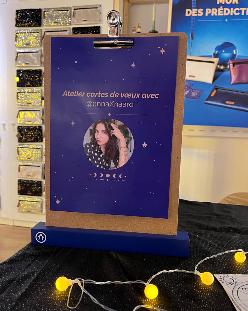 Création de cartes de vœux à colorier pour la collection de sacs et de pochettes inspirées de l’univers de la magie.