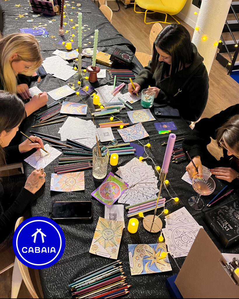 Animation d’un atelier couleurs avec des influenceurs, lors d’un évènement de la marque Cabaia.